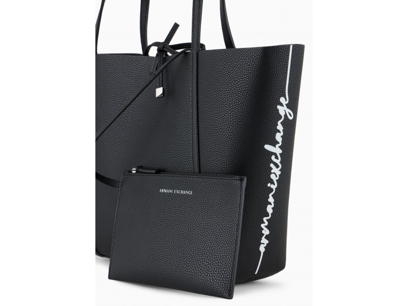 Shopper reversibile in ecopelle, elegante e versatile, con logo Armani Exchange e pochette interna removibile.