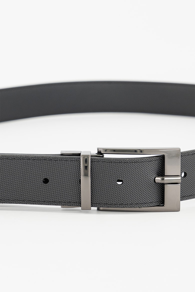 Cintura in pelle elegante con fibbia regolabile e logo inciso, perfetta per ogni occasione.