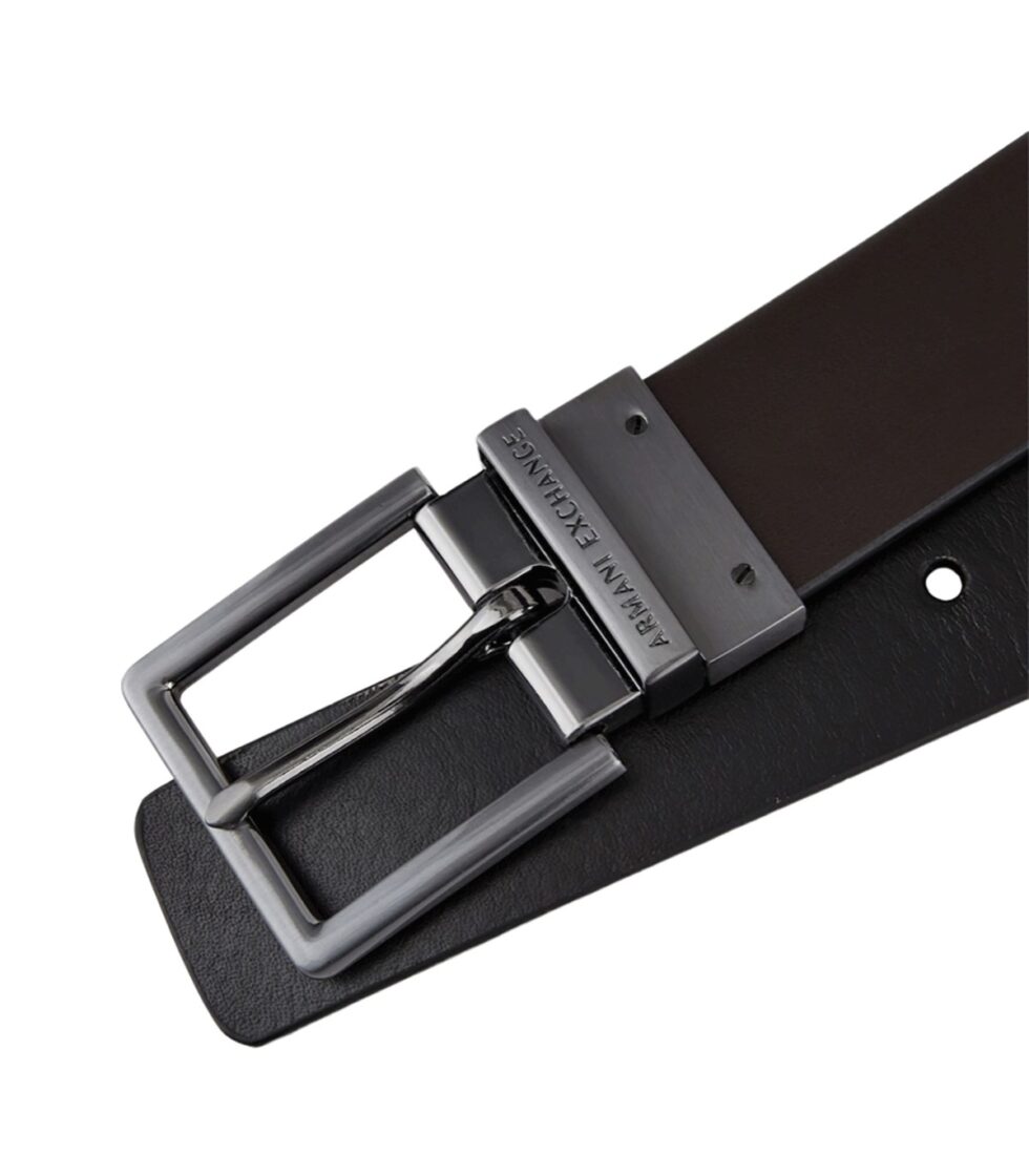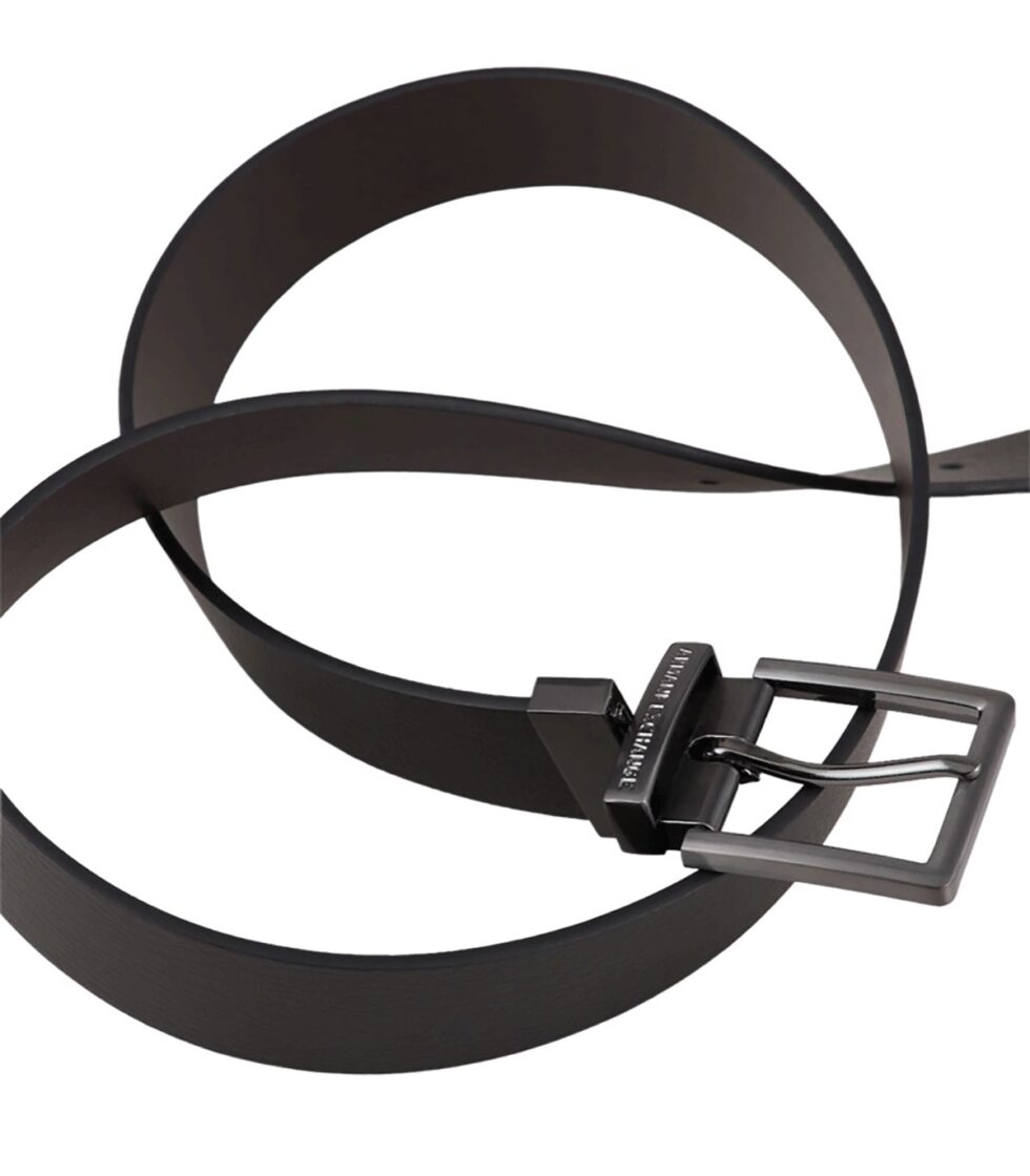 Elegante cintura in pelle con fibbia e logo Armani Exchange, perfetta per ogni occasione.