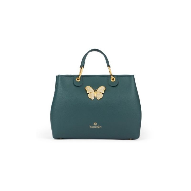 Borsa a mano da donna Braccialini modello B17915 della linea Beth Jewels, realizzata in ecopelle di alta qualità, con doppio manico, tracolla regolabile e removibile, e decorazione a farfalla gioiello sul davanti, ideale per un look elegante e sofisticato.