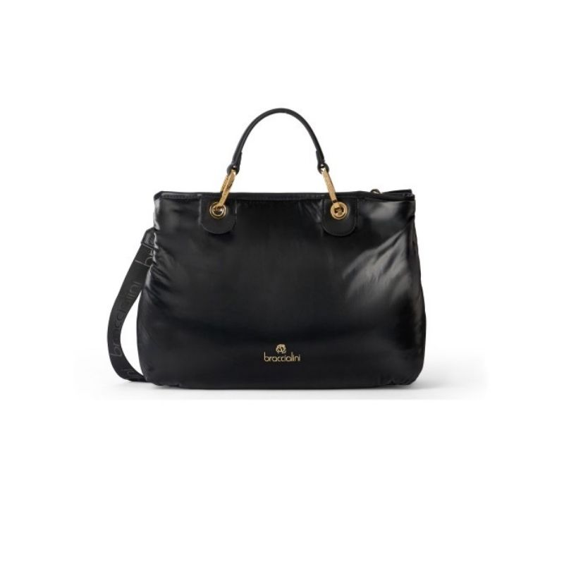 Borsa a mano da donna Braccialini modello B17920 della linea Beth Puffy, realizzata in nylon effetto seta con finiture in materiale sintetico, dotata di doppio manico, tracolla regolabile e removibile, e pochette interna estraibile, ideale per un look elegante e contemporaneo.