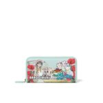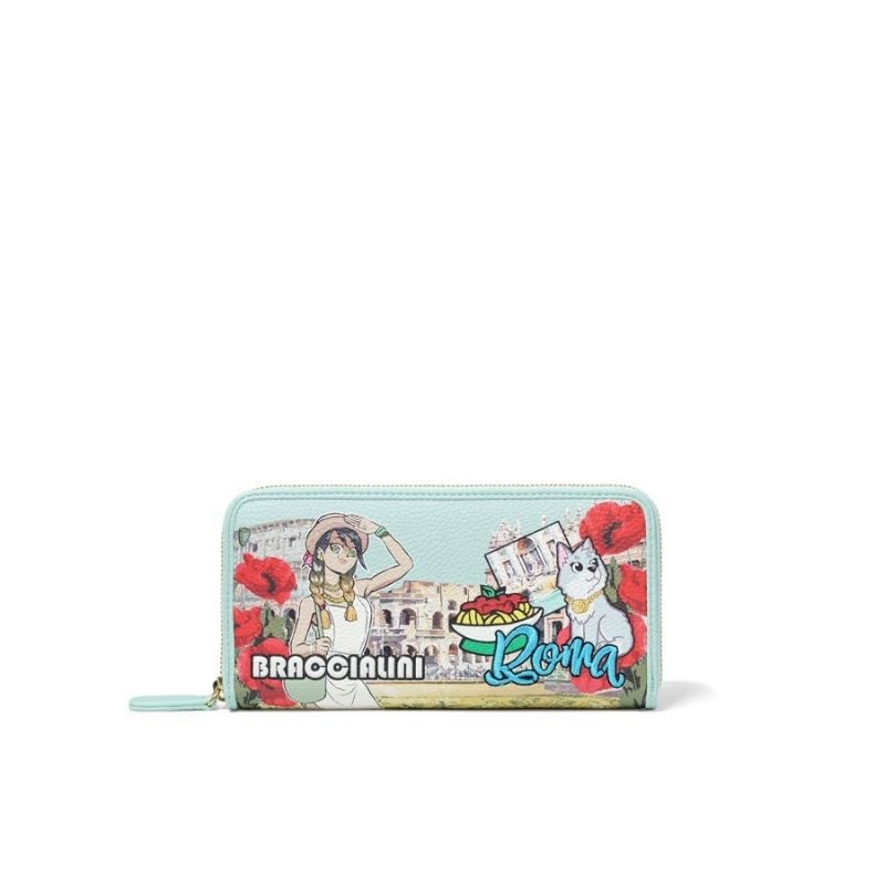 Portafoglio da donna Braccialini modello B17627 della linea Cartoline, realizzato in ecopelle con stampa ispirata a Roma, dotato di scomparti per carte di credito, banconote e monete, ideale per aggiungere un tocco artistico al tuo stile.