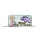 Portafoglio da donna Braccialini modello B17189 della linea Cartoline, realizzato in ecopelle con stampa ispirata a una destinazione esotica, dotato di chiusura zip-around e scomparti interni per carte, banconote e monete, ideale per aggiungere un tocco artistico al tuo stile.