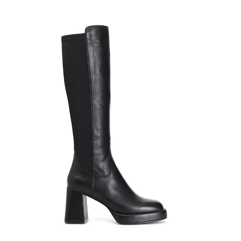 LD1060 Cafè Noir Stivale: stivale elegante in pelle e tessuto stretch, perfetto per un look sofisticato e confortevole.