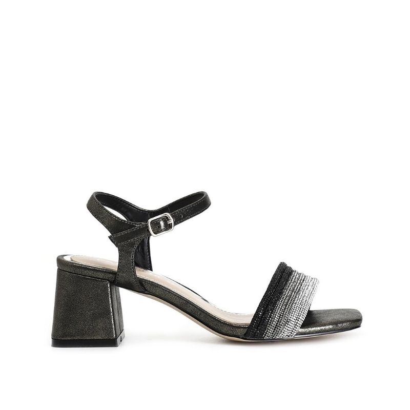 LB9014 Cafè Noir Sandalo: sandalo elegante con strass sul davanti, perfetto per brillare in ogni occasione.
