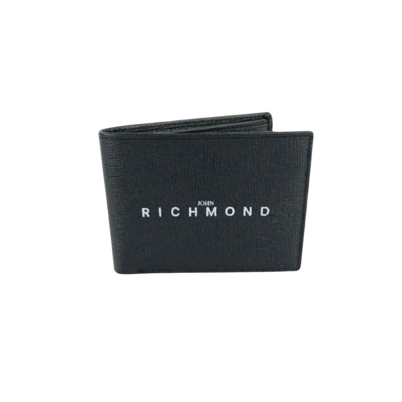 Portafoglio da uomo John Richmond modello JR-W139, realizzato in pelle nera di alta qualità con finitura saffiano, dotato di scomparti per carte di credito, banconote e tasca portamonete, ideale per un’organizzazione elegante e funzionale.