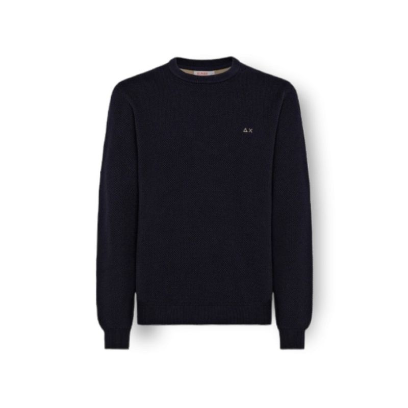 Maglione da uomo SUN68 modello K42117, girocollo in lana e cotone con lavorazione a chicco di riso, ideale per un look casual e raffinato.