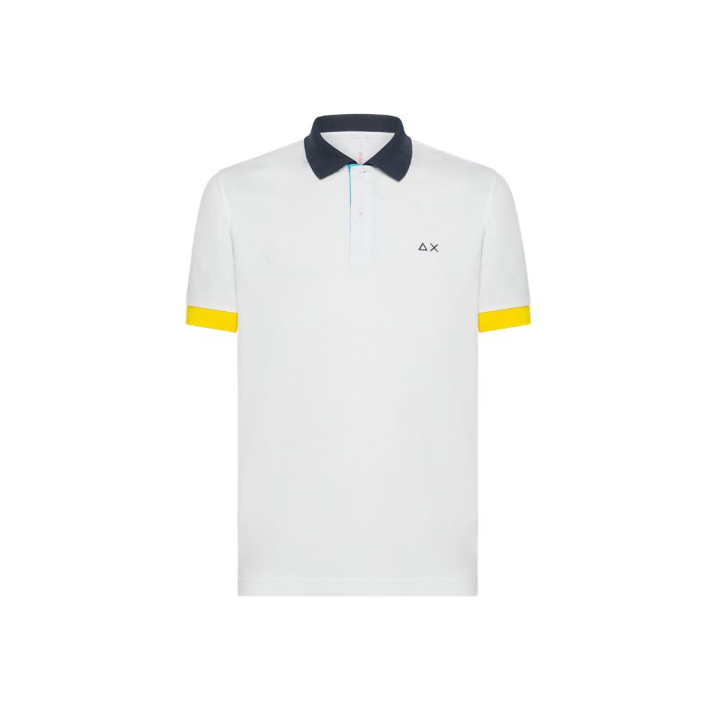 Polo da uomo SUN68 modello A34115, realizzata in cotone piqué elasticizzato con dettagli a contrasto, ideale per un look casual e dinamico.