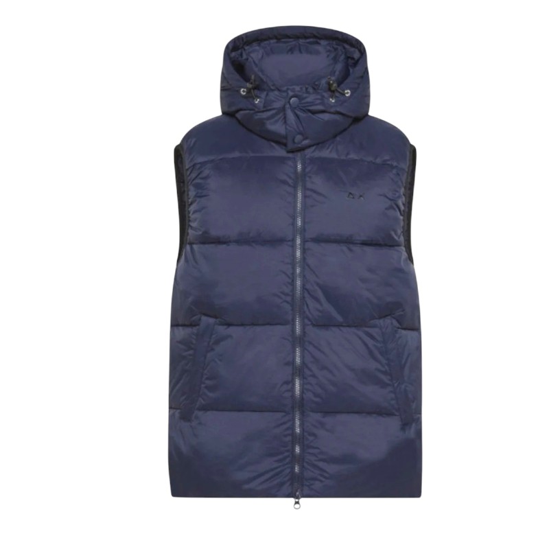 Gilet da uomo SUN68 modello R43102, realizzato in poliammide con cappuccio removibile, ideale per un look casual e funzionale.