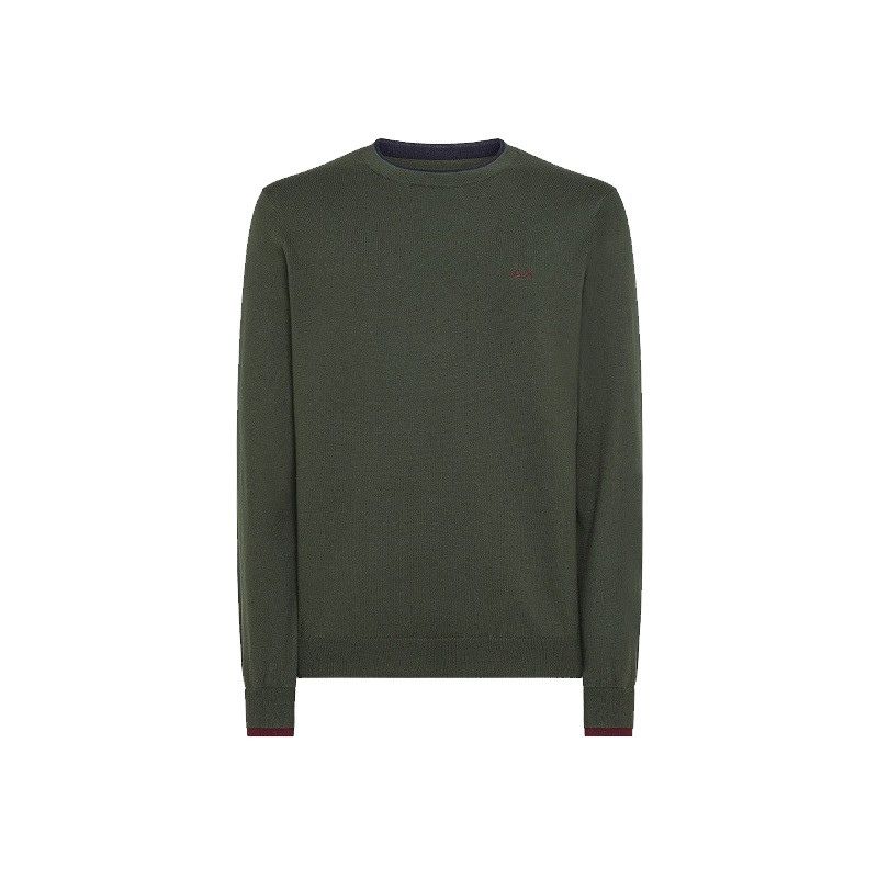 Maglia girocollo da uomo SUN68 modello K43106, realizzata in misto cotone e lana con dettagli a costine e bordi a contrasto, ideale per un look casual e raffinato.