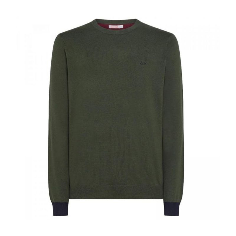 Maglia girocollo da uomo SUN68 modello K43110, realizzata in misto lana e cotone con toppe a contrasto sui gomiti, ideale per un look casual e raffinato.