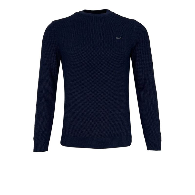 Maglione girocollo da uomo SUN68 modello K43120, realizzato in misto cotone e lana con lavorazione a punto riso, ideale per un look casual e raffinato.